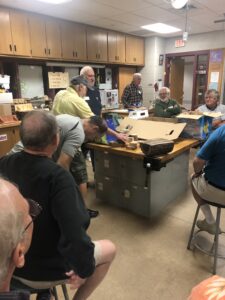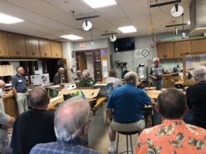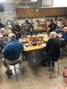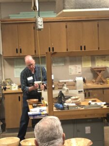 Back from our summer break we met to learn about tips and techniques for finishing our turnings by Jim Finley.  We also had our normal show and tell and wood auction.
