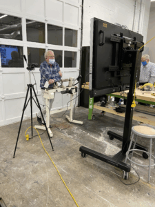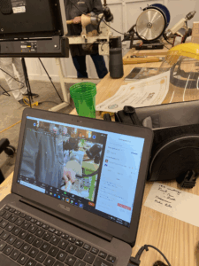 On October 1st we returned to the Rivet to use their facility and video streaming setup to host a zoom meeting with Jim Finley demoing making a baby rattle and hook tool usage and sharpening of a hook tool and double grind rake scraper. Some pictures of the event with a glimpse at how remote meetings are done.