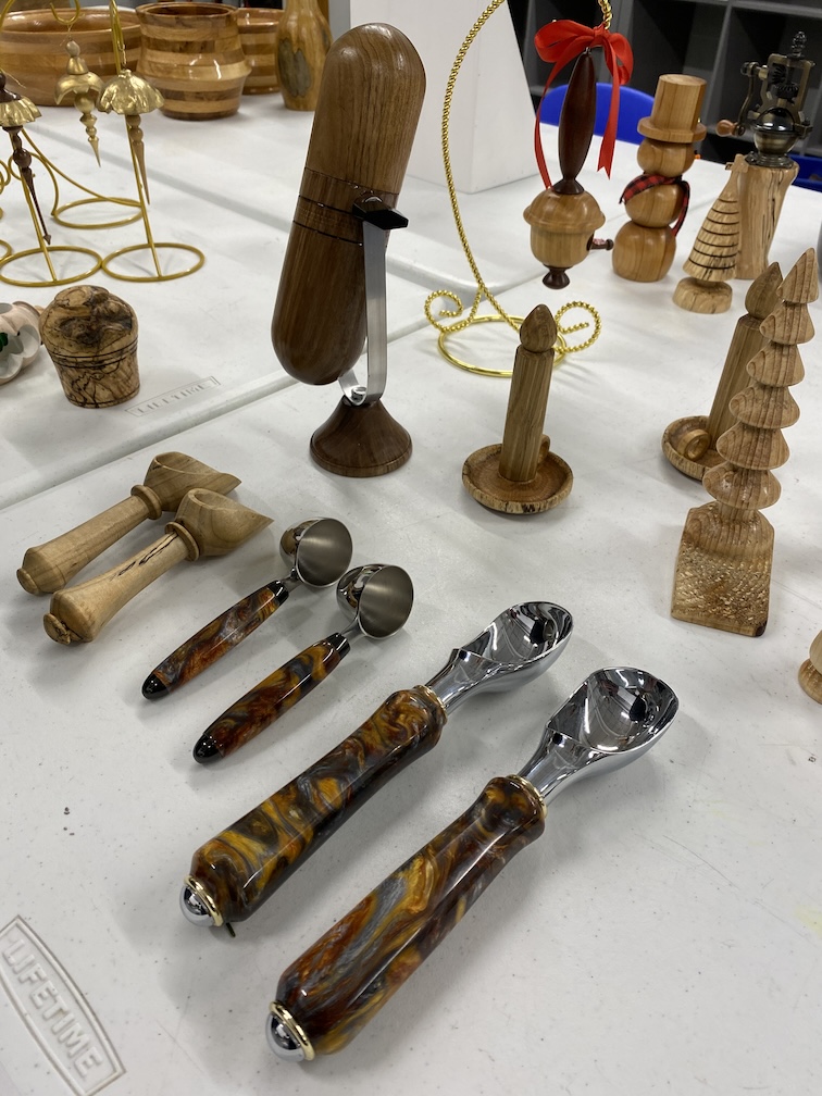 Paul Demmert discussed many different options of things you can make from skills gained after making pens. There are many things like coffee scoops, ice cream scoops, pizza cutters, measuring cups and spoons, and seam rippers which go together much like pens by tuning handles. You can find kits for such projects at places like Penn State Industries.